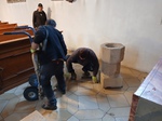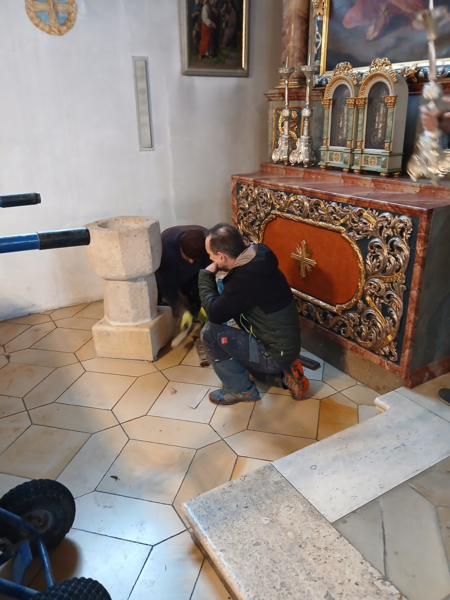 Nach dem Ausbau der Heizung, entfernte man den Taufstein, der eine Leihgabe aus der St. Vitus Kirche von Lindach war.